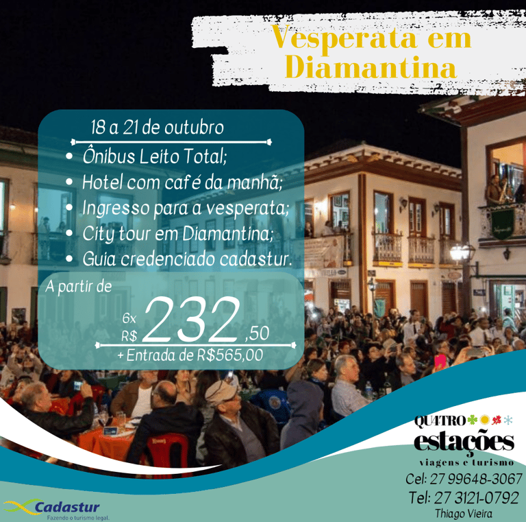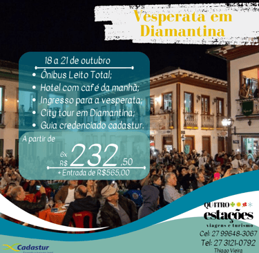 A Vesperata é uma espécie de serenata às avessas, em que o público se senta na rua e os músicos ganham lugar de destaque nas sacadas. O espetáculo acontece em datas pré-estabelecidas, sempre aos sábados, entre os meses de abril e outubro, quando as chuvas são escassas e o público pode curtir o sol e o friozinho de Diamantina. A Vesperata é evento disputado e quem deseja se hospedar em Dimanatina nesse período deve fazer reservas com antecedência. O concerto a céu aberto tem duração média de 2h30 e o público pode adquirir ingressos para se sentar nas mesas em meio à Rua da Quintada (onde há serviços dos restaurantes e bares locais) ou se ajeitar nas escadas e calçadas gratuitamente. O importante é não perder a música e nem a enérgica regência dos maestros.